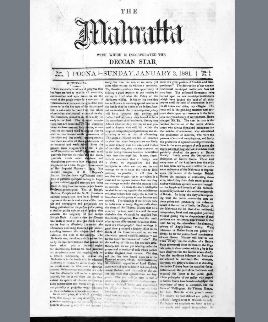 Launched alongside Kesari in 1881, The Mahratta targeted educated readers, scholars, and international audiences. It offered deeper political analysis and presented the Indian viewpoint to the Western world.